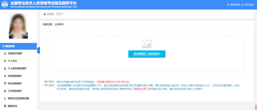 考生登录系统后,按照操作提示进行报名。如果考生没有上传照片,考生需上传照片,系统会自动跳转到上传照片页面。